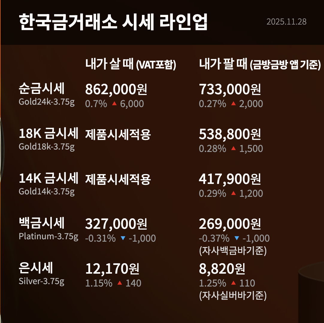 🌟 1. 현재 금시세 — 2025년 11월 말 기준