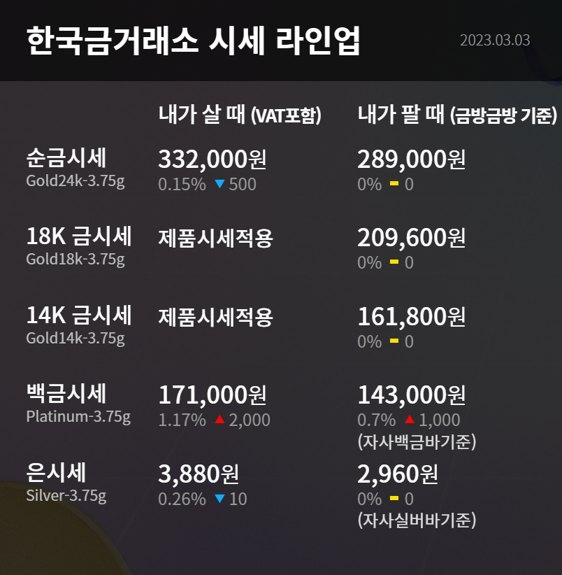 오늘의 금값시세 2023.03.03 금값 1돈 가격 얼마?